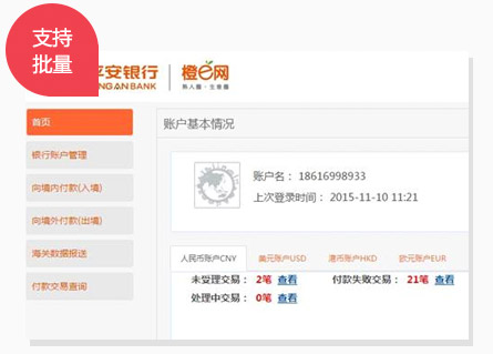 用戶(hù)登錄平安銀行跨境電商服務(wù)平臺(tái),按照標(biāo)準(zhǔn)制作并上傳支付清單,并將相應(yīng)資金劃轉(zhuǎn)至平安銀行專(zhuān)用監(jiān)管賬戶(hù),平安銀行與合作機(jī)構(gòu)將會(huì)審核資料,審核通過(guò)后為用戶(hù)完成跨境資金結(jié)算,用戶(hù)可登錄查詢(xún)支付結(jié)果